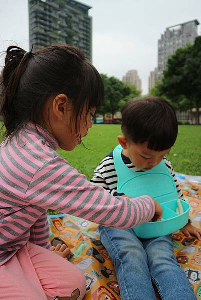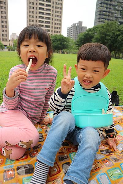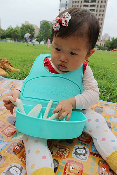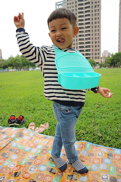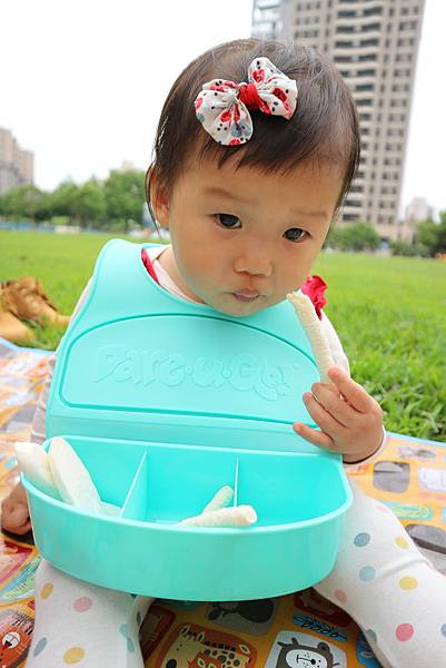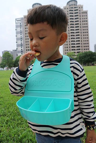 把零食餅乾或是水果放在兜兜裡就是現成的餐碗啦!