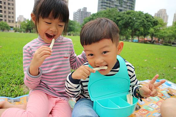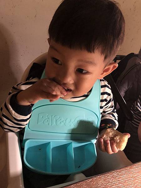 不管是吃飯吃水果吃零食,媽咪我都會要求孩子們戴上圍兜